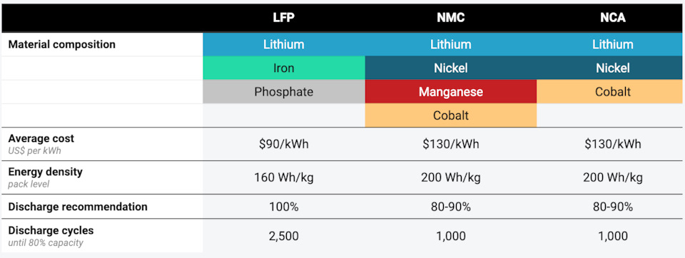 • Аккумуляторы LFP: дешевле, более длительный срок службы и безопаснее.