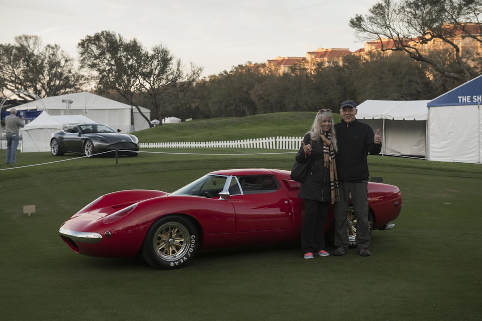 Майкл Шоэн с женой и Shelby Lone Star на конкурсе элегантности Amelia Island 2018 года