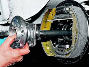 - Демонтировать барабан. В случае если он не сходит с колодок, осторожно сбить его, используя проставку и молоток.