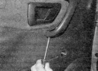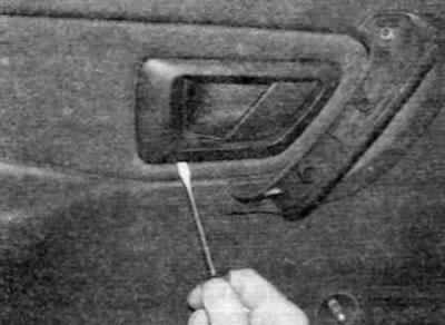 - Снимите пластиковую накладку с дверной ручки с помощью отвертки.