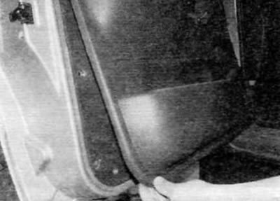 Рис. 11.14. Используя подходящий вильчатый инструмент, отпустите фиксаторы по всему периметру внутренней панели отделки задней торцевой двери