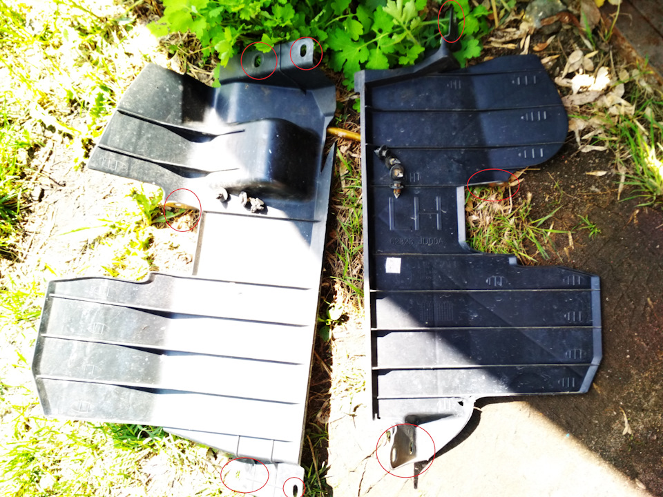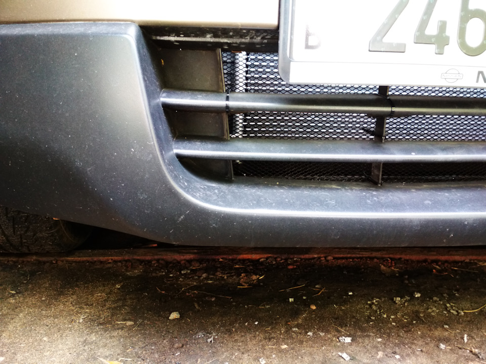 Между ними пять клипс, соединяющих бампер с пластиковым пыльником защиты
