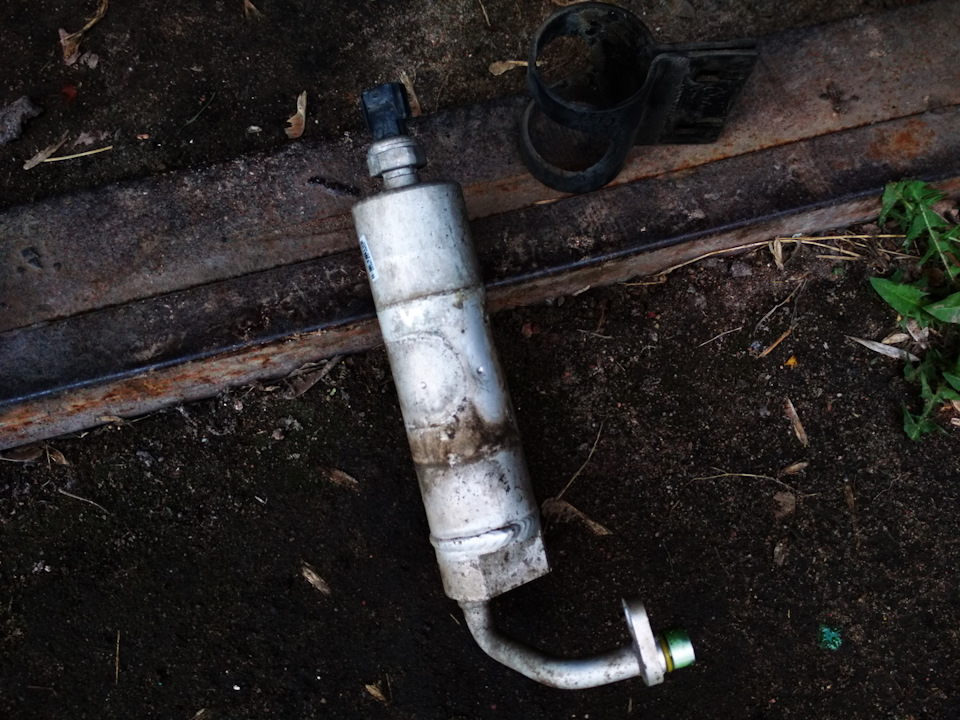 Вот он старый радиатор, с него нужно снять осушитель и датчик давления(понадобится ключ 24) и перекинуть на новый, кто хочет, может купить новый осушитель, он же фильтр какой то, аналогов нет, оригинал в р-не 3тыс. Я решил оставить старый, т.к. к работе кондиционирования вопросов не было