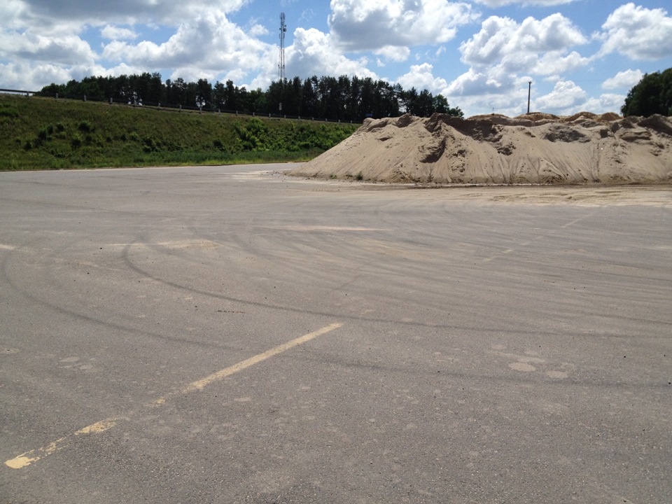 В поворотах появился довольно плотный накат, несмотря на дождь и песок. А сегодня я заехал на площадку, чтобы посмотреть, что же осталось от наката: