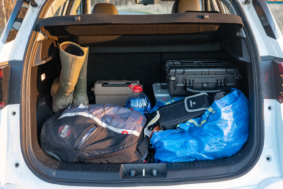 Багажник откровенно невелик, полка жесткая, из удобств лишь лампа подсветки. Зато отделка — прочный пластик, а не картон, как на новом "Джаксквиче". Полик тоже — добротная тяжелая полка, под которой притаилась докатка.