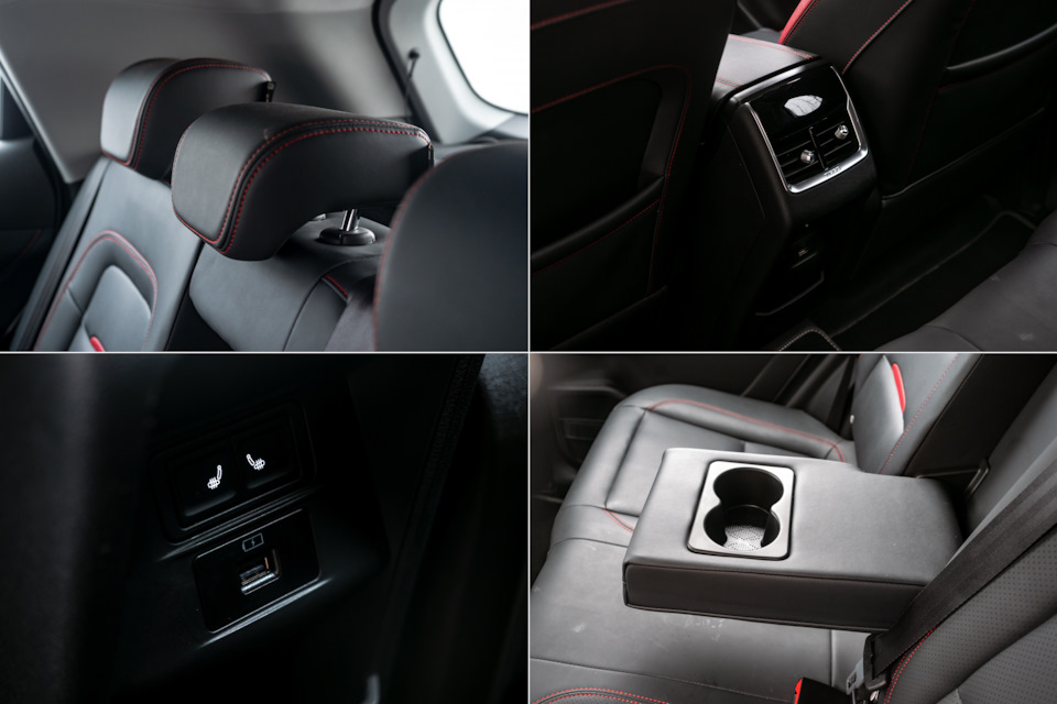 Проем задней двери широкий и высокий. Второй ряд — четко на двоих. При росте 172 сам за собой сажусь нога на ногу. Есть зарядка USB, дефлекторы, и подогрев подушки дивана. К материалам нареканий ноль, но углы подлокотника и сидений имеют не идеальную форму.
