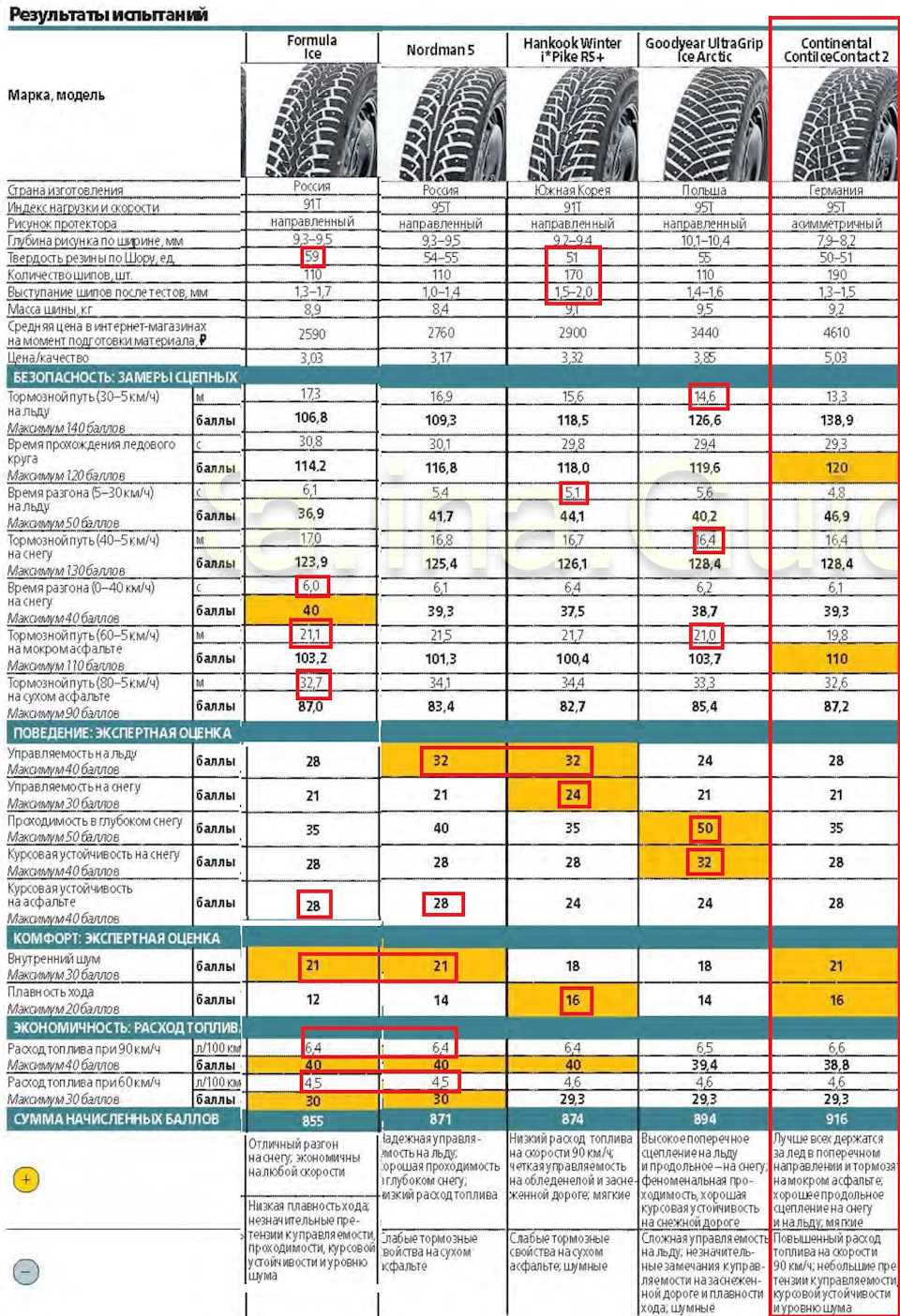и присудили ей пятое место. Из недостатков отметили относительно длинный тормозной путь на мокром покрытии, повышенное сопротивление качению и уровень шума.
