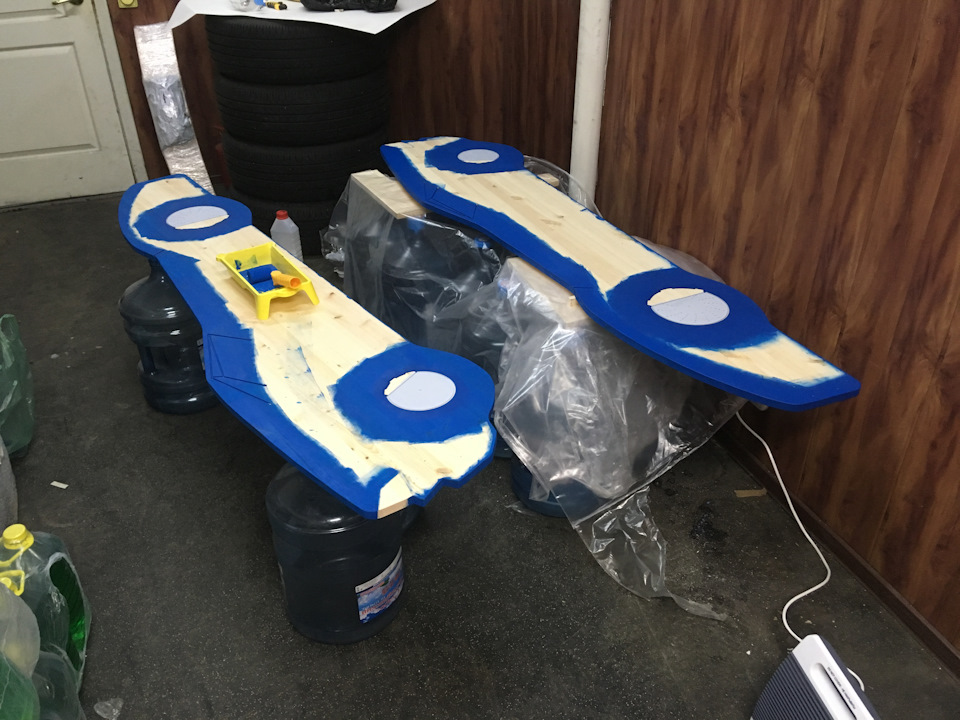 Краску купил такую же, какую использовал автор проекта. Как оказалось это одна и та же краска, можно сказать с одной бочки, но под разными названиями — Clever Trend Color, Радуга, Атлас. Очень хорошая акриловая краска на водной основе, не воняет вообще, быстро сохнет, рекомендую! В леруа взял готовую синюю, а голубую колеровал там же, просто выбрал из каталога подходящий цвет.