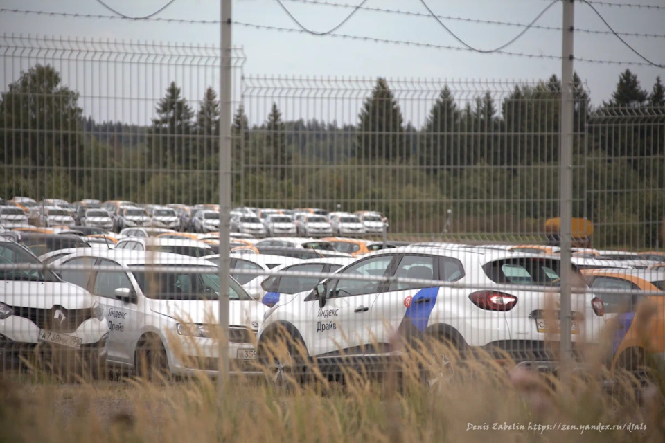 За небольшим сетчатым забором с несколькими рядами колючей проволоки, под неусыпным наблюдением многочисленных камер видеонаблюдения, стояли тысячи каршеринговых автомобилей «Яндекс.Драйв» и «Сити.Драйв».